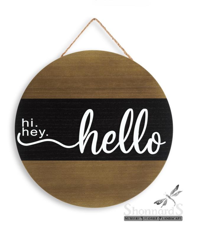 Round Hello Sign Brown Black 12"