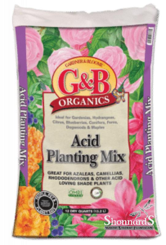 G&B ORGANICS ACID PLANTING MIX is ready-to-use right out of the bag, or can be mixed with native soil. This wonderful blend helps shade dwelling, acid loving plants like azaleas, hydrangeas and camellias bring their vibrant colors out, making your garden pop! It’s all-natural mix is also great for trees such as magnolias, maples and conifers.