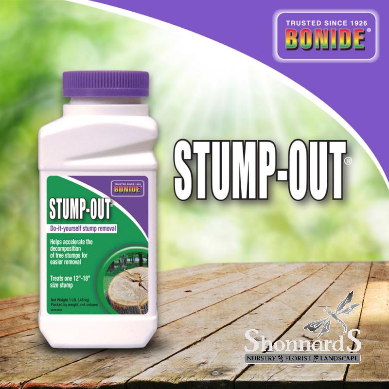 BONIDE Stump-Out® accelerates the decomposition of seasoned tree stumps to allow them to easily be burned out or chopped out of the ground. Works in 4 - 6 weeks.