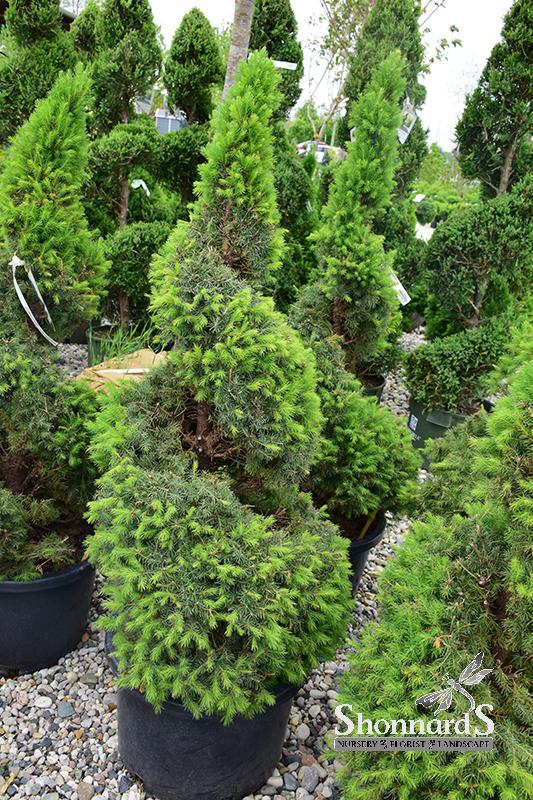 Very slow growing, maintains a dense conical shape without any pruning. Repot and re-use for several years, or plant it out as a large specimen shrub.
