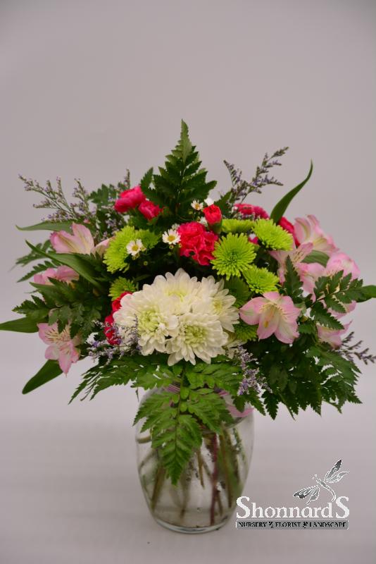 A mix of long lasting flowers. Typically including: Chrysanthemums, Mini Carnations, Carnations, Alstromeria, Statice, and other filler flower
