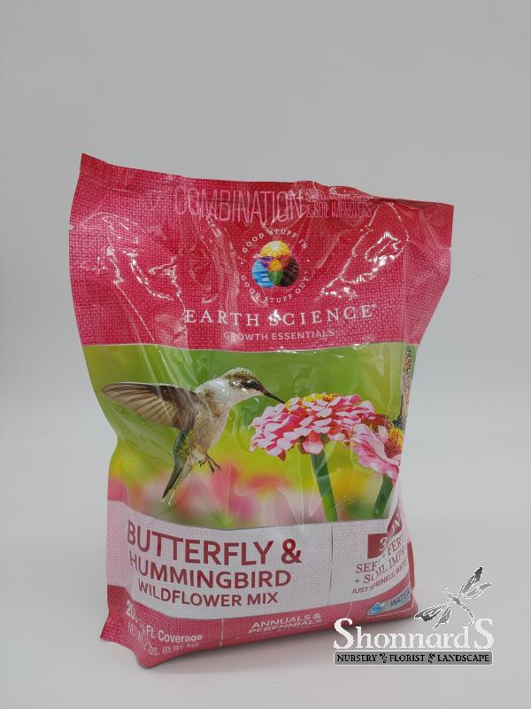 Brighten your landscape with a burst of brilliant, colorful flowers. We make it easy with this all-in-one formula that contains natural wildflower seed, mulch, plant food, and soil conditioners. Our Butterfly and Hummingbird Mix is a carefully selected blend of wildflower species known to attract butterflies and hummingbirds, including zinnia, cosmos, Shasta daisy, sweet William, and black-eyed Susan.