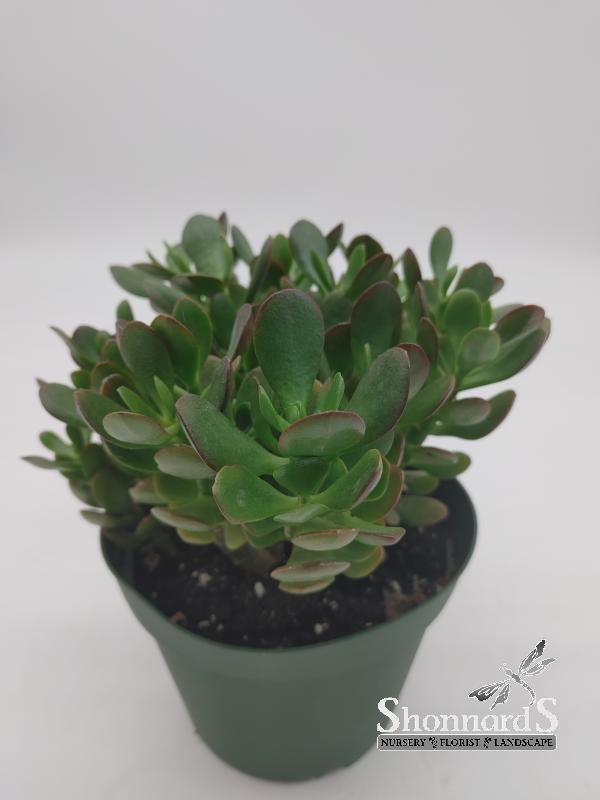 Typically featuring lush green foliage, the Jade Plant can also display hints of red along the leaf edges when exposed to ample sunlight.