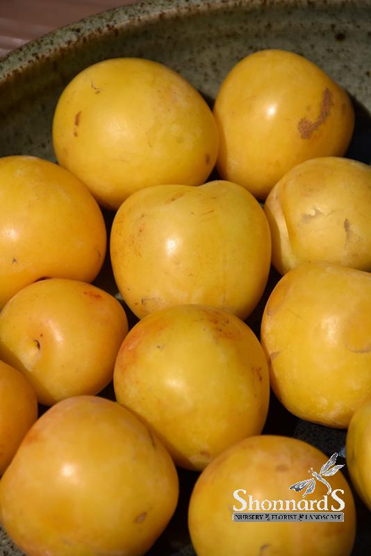 A much sought-after dwarf selection with showy fragrant white flowers in spring followed by super-sweet and juicy yellow fruit in mid-summer; quite ornamental; needs full sun, well-drained soil and a pollinator.