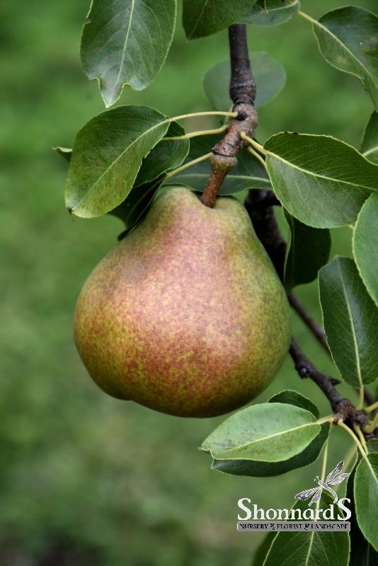 Grows very large, greenish-yellow pears with a red blush, that are juicy with a very rich flavor. Known to be one of the sweetest and juiciest European varieties, thus is favored for fresh eating. Long-lived fruit tree make it a great choice for home gardeners. Harvest from October to January; has excellent shelf life. Hardy tree, and considered moderately drought tolerant.