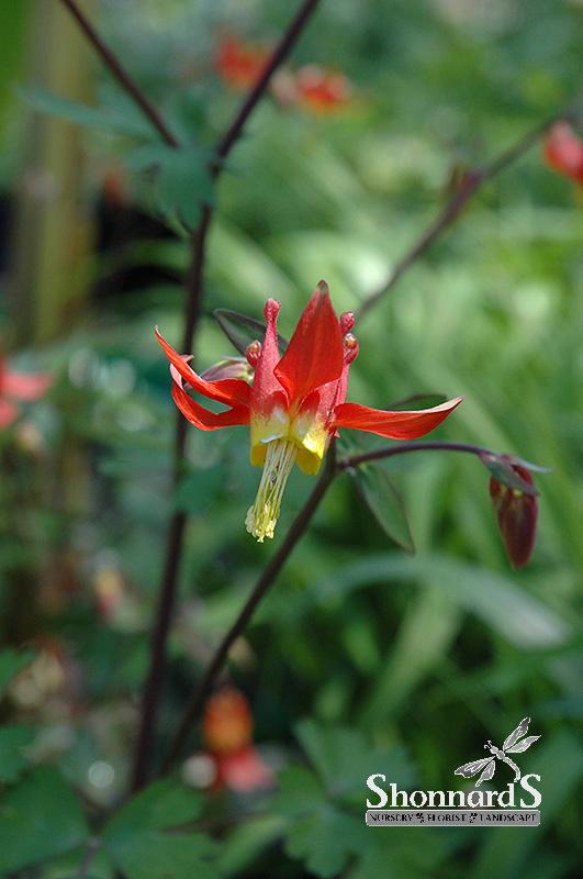 Elegant crimson-red flowers with yellow throats nod graciously over the medium green delicate foliage; a wonderful addition to border edges or massed in the garden; will self seed