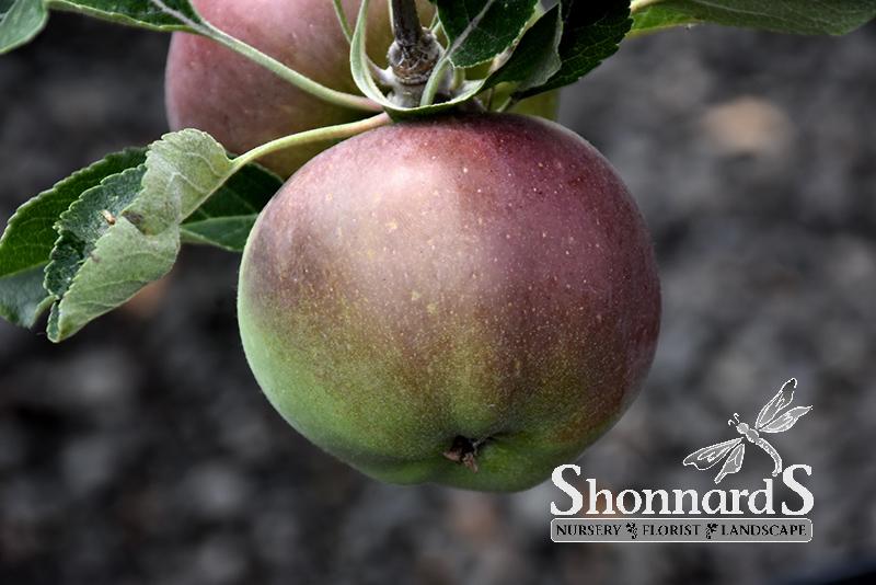 A large sized apple that is deep red with flecks of green-yellow; an excellent dessert or cooking apple; ideal for home landscapes, needs well-drained soil and full sun.