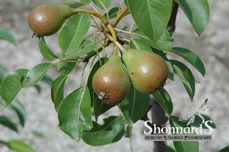 This vigorous variety produces light yellow-green fruit with a red blush in late summer; very showy white flowers in spring and an upright oval habit, very ornamental; needs a pollinator; shows excellent resistance to fire blight.