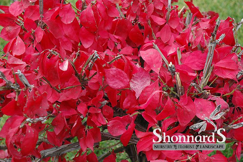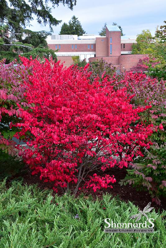A spectacular and compact garden shrub which turns a luminous florescent pink color in fall, very showy; a shapely mounded growth habit and interesting corky wings on the branches; a very popular and adaptable landscape plant