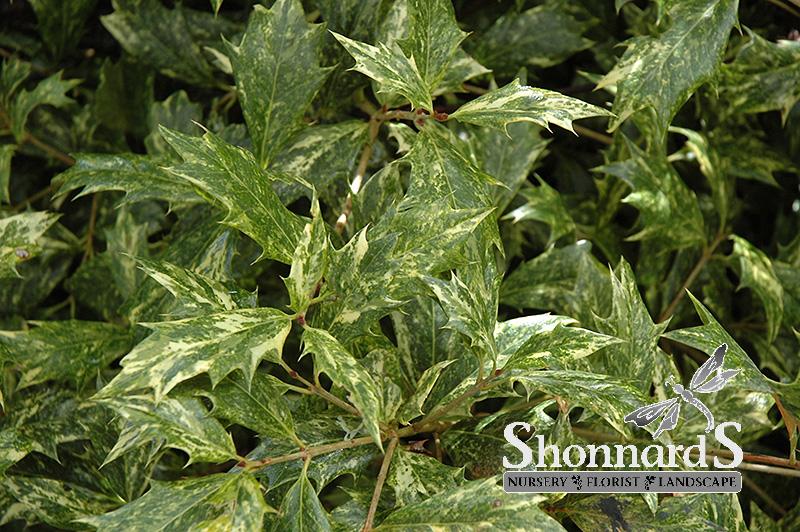 This cultivar is similar in looks to holly, but it's actually related to lilac and privet; beautiful golden-variegated leaves are quite ornamental; flowers may not be showy but are extremely fragrant, blooming in fall; more adaptable than holly
