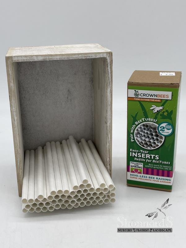 8mm inserts that fit into Mason Bee Protective Cardboard Tubes. The white paper inserts are easy to peel when harvesting and the thick cardboard tubes protect vulnerable mason bee larvae from most mono-wasp predation.