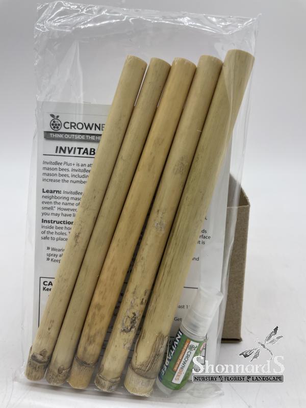 Invitabee is a sprayable pheromone mimicking attractant designed to make your mason bee hotel stand out! Just one spray per house is all you need. Comes with five 8mm natural reeds as a visual attractant to be placed around your existing nesting material.