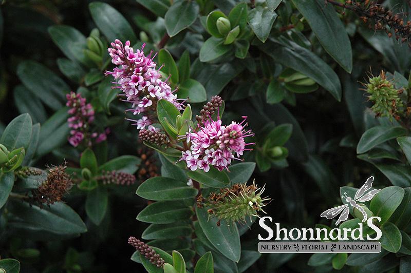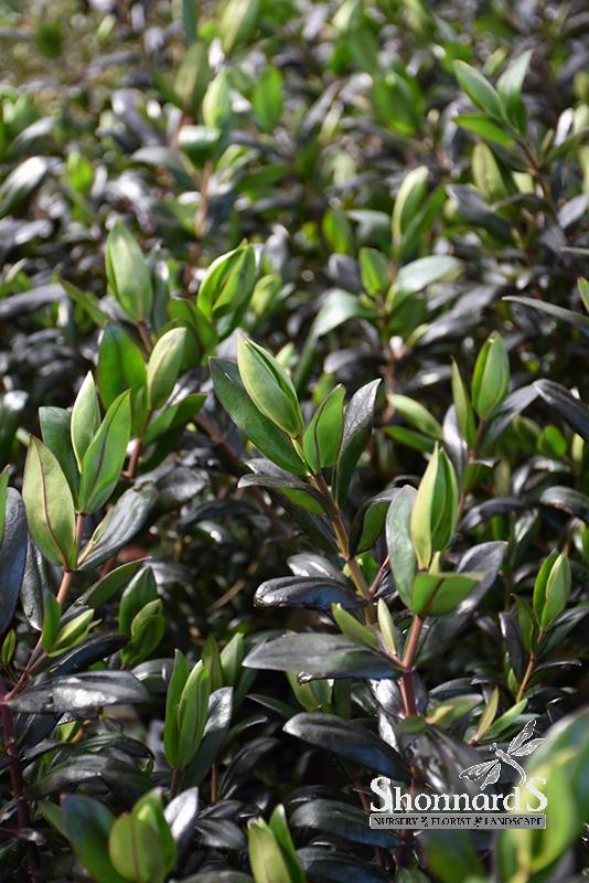 A lovely evergreen upright shrub with deep green glossy leaves; maroon-pink flowers are impressive when massed; likes neutral to slightly alkaline soils; will tolerate very mild frost, but should be sheltered