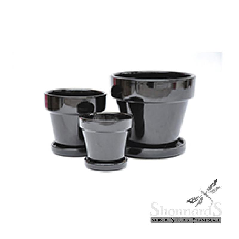 Standard Pot w/ Attached Saucer Black 7.5" x 7"