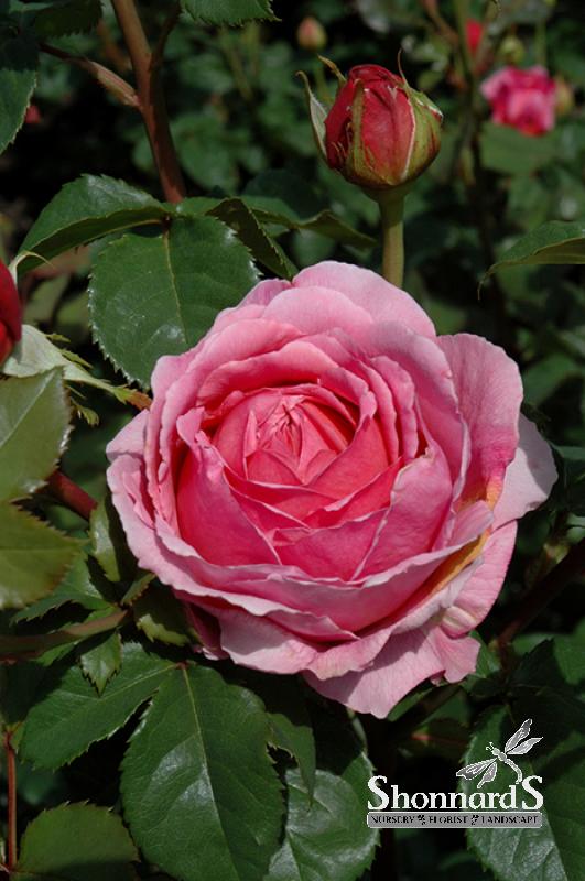 A stunning English rose, this variety produces full cup shaped blooms that are luminous, deep pink; needs full sun and well-drained soil; good disease resistance; a robust and free flowering rose on a bushy, upright plant.