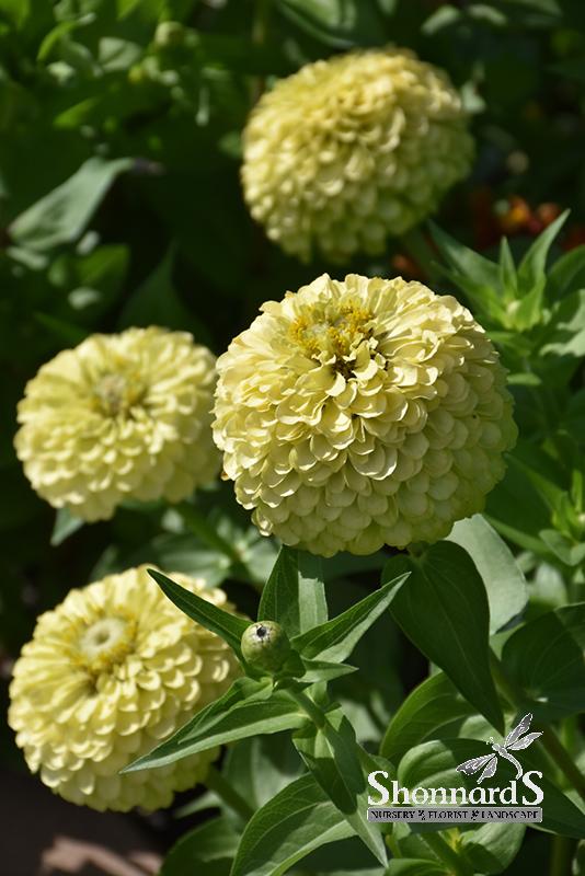 Envy Zinnia features bold double chartreuse round flowers at the ends of the stems from late spring to early fall. The flowers are excellent for cutting. Its pointy leaves remain green in color throughout the season.