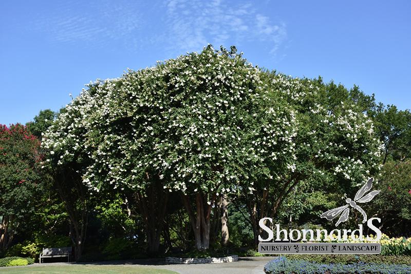 An ornamental tree that is covered with papery panicles of white flowers on weeping branch tips; decorative bark exfoliates to expose layers of color; shows good resistance to powdery mildew; heat and drought tolerance; does not like to be over-fertilized.