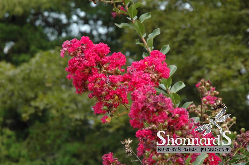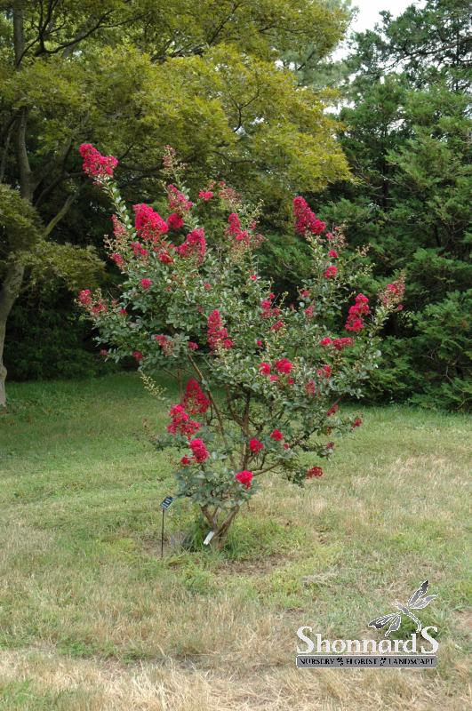 Cherokee Crapemyrtle is smothered in stunning panicles of red frilly flowers at the ends of the branches from mid summer to early fall. It has attractive dark green deciduous foliage which emerges coppery-bronze in spring. The oval leaves are highly ornamental and turn red in fall.