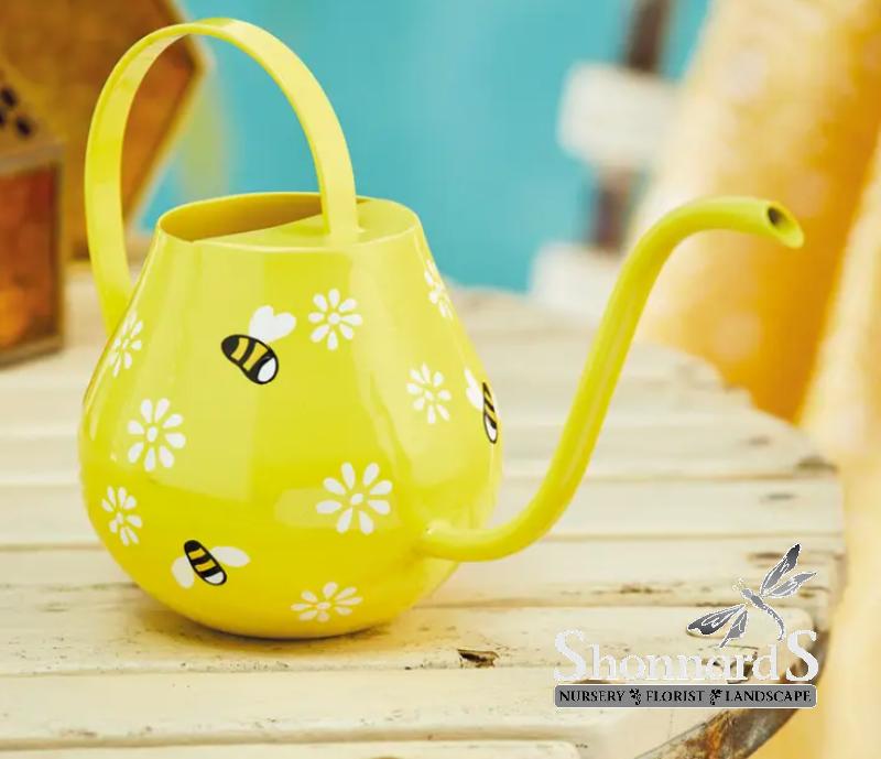 This attractive bee themed watering can has a long spout for easy reach into houseplant foliage. Three adorable busy bee motifs on each side, fly amid blooming white flower heads. Finished in gloss, this is a practical present for the green fingered and a novel gift for those with an interest in the horticultural or a passion for the role of pollinating bees in the eco system.