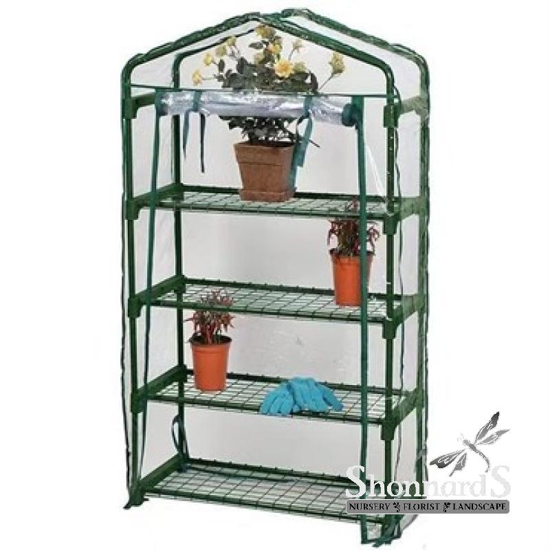 4 ventilated shelf small greenhouse with heavy duty transport cover. Easy to assemble.