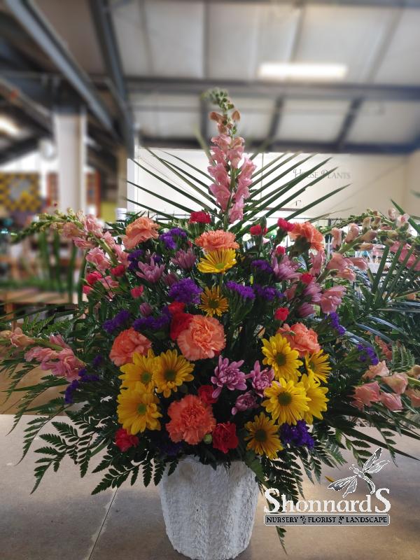 Typically includes: Carnations, Snapdragons, Chrysanthemums, Mini Carnations, and Filler Flower.