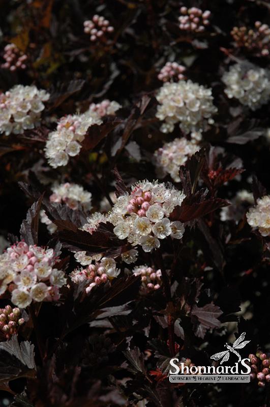 This stunning garden shrub is a significantly more compact variety; foliage emerges a wine-red and matures to a deep reddish-purple, contrasting the showy white flowers in spring; also has interesting peeling bark; an excellent choice for a smaller area