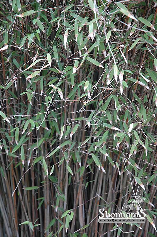 This imposing selection makes a beautiful screen or accent in the garden; stems color is purple to gray-blue; this bamboo is even tolerant to full sun, but prefers some shade; a non-invasive but vigorous variety