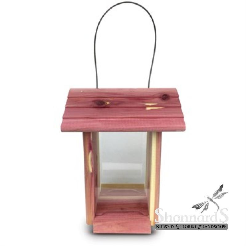 Dinette Bird Feeder is a great starter size hopper style feeder and is perfect for attracting a variety of small wild birds to your backyard. Constructed from durable Eastern Red Cedar, nature's renewable resource is naturally resistant to weather and insects, providing additional functionality to your bird feeder. This feeder comes fully assembled, easy to fill and ready to hang with weather resistant hanging cable.