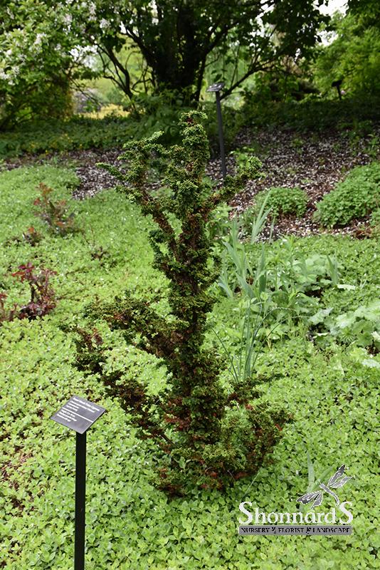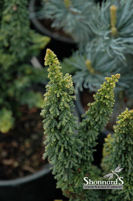 This very slow growing dwarf variety has an upright, narrow habit and fine gray green, bottlebrush-like foliage; great in containers and other small spaces