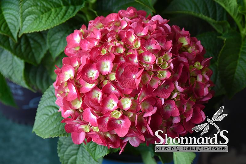 Summer Crush® Hydrangea features bold balls of ruby-red flowers with red overtones at the ends of the branches from early summer to early fall. The flowers are excellent for cutting. It has forest green deciduous foliage. The glossy pointy leaves do not develop any appreciable fall color.
