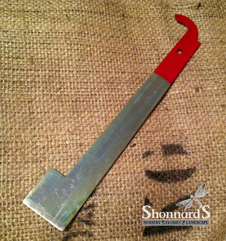 Hive Tool with J-Hook sports a sharp edge for slicing through bur comb and a J curve to easily lift frames.