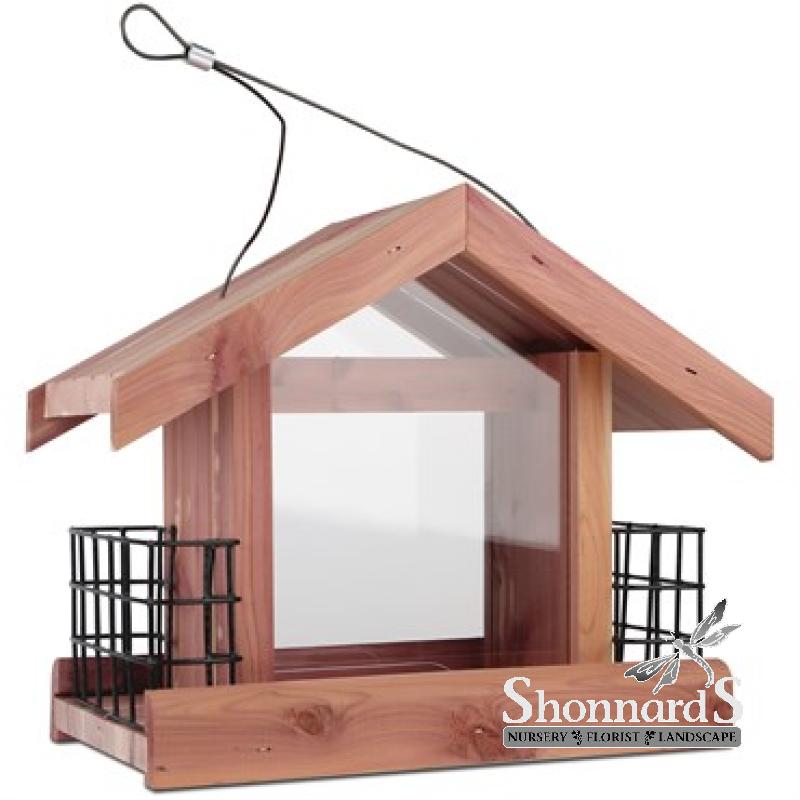 This Bird Feeder is constructed from beautiful, renewable, weather-resistant eastern red cedar. This hopper style feeder with attached suet baskets is ideal for attracting a variety of colorful songbirds to one feeder