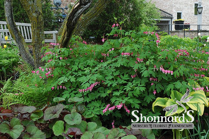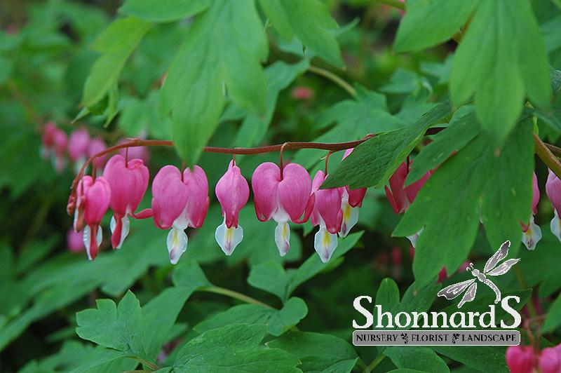 Common Bleeding Heart features delicate nodding pink heart-shaped flowers with white tips dangling from the stems from late spring to early summer. Its ferny compound leaves remain bluish-green in color throughout the season. The fruit is not ornamentally significant.