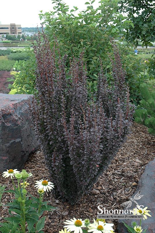 This barberry combines a rigidly upright, columnar habit with rich purple-red foliage spring and summer and fall. Deciduous.