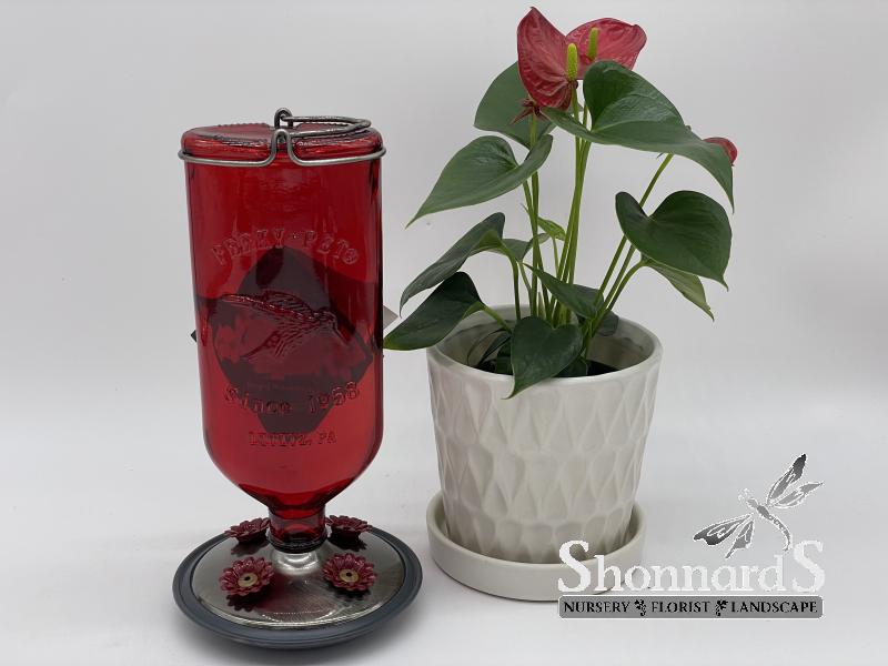 Hummingbirds and hummingbird admirers will be attracted to this classic glass feeder with an antique design. The Perky-Pet® Antique Bottle Hummingbird Feeder holds 10oz of nectar in an antique-styled glass bottle. The decorative glass feeder features an ornate brushed copper base with four decorative flower feeding ports.