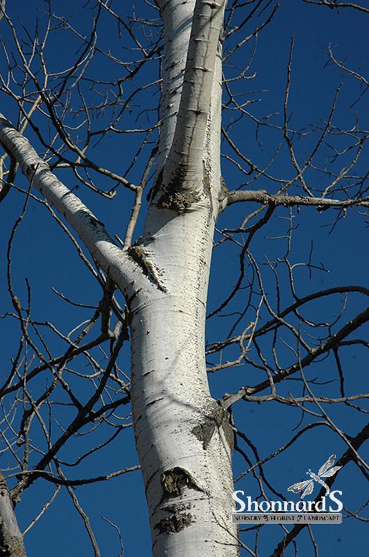 A delicate native of the North American forest, with showy white bark and leaves that flutter in the faintest breeze; suckers vigorously, doesn't tolerate polluted conditions well, best left in a natural forest setting or a suburban woodland composition.