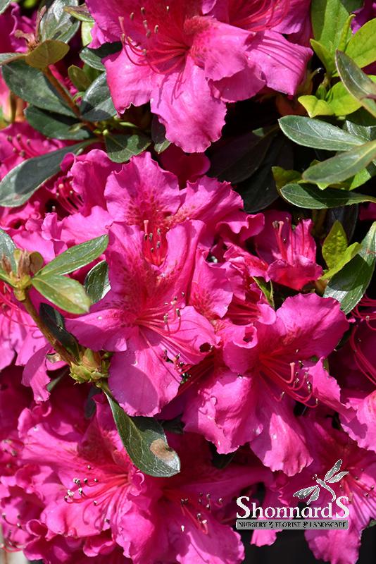 A hardy variety with bright fuchsia blooms that cover a dense mounded shrub in mid spring; ideal when massed in borders, foundation plantings, or low screening; absolutely must have well-drained, highly acidic and organic soil.