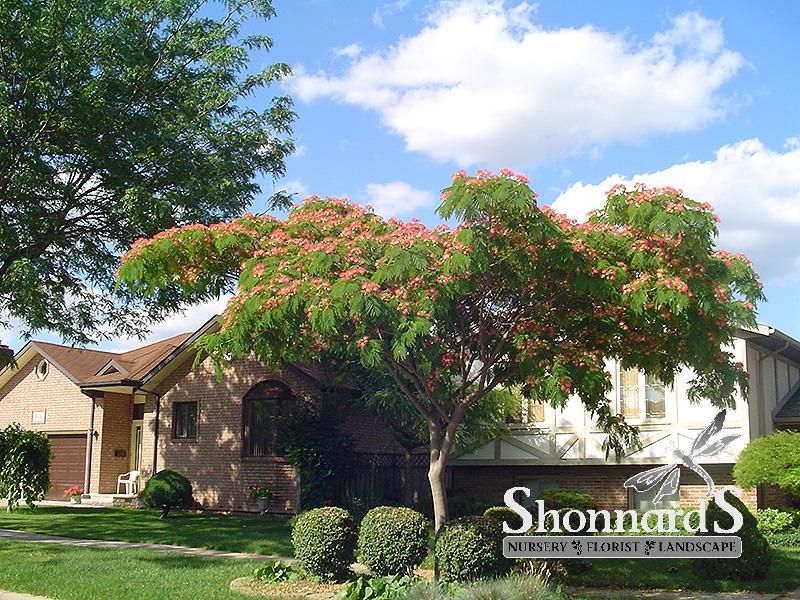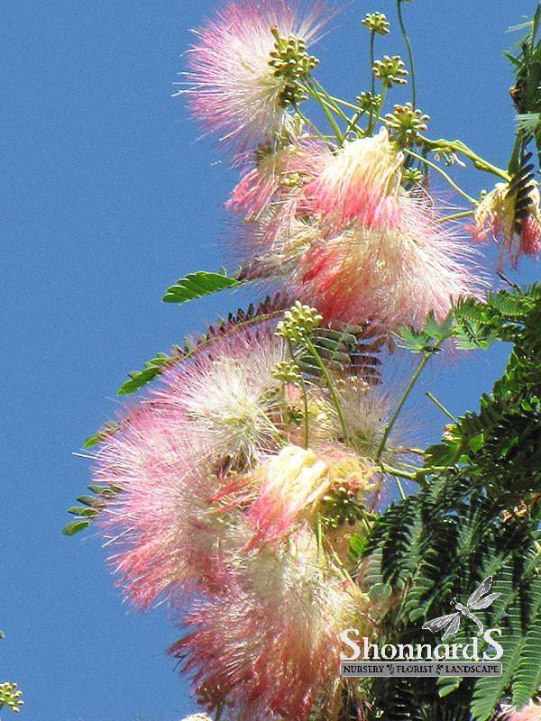 Attractive airy foliage and open umbrella-like form make this a highly desired tree, casts light shade, leaves tend to close for the night; interesting and graceful pink fuzzy flowers are fragrant and will scent the air