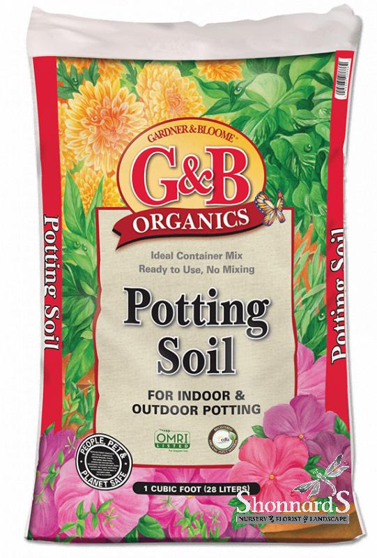 Nothing is more important to a plant growing in a pot or container than potting soil. The soil is the plant’s lifeline! A plant growing in the ground can send its roots deeper or wider to compensate for inadequate soil. But the potted plant does not have these options. G&B ORGANICS POTTING SOIL is the perfect container mix. It drains well yet retains just the right amount of moisture around tender roots. Go ahead – spoil your plants with G&B ORGANICS POTTING SOIL!