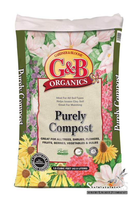 Mix G&B ORGANICS PURELY COMPOST with your native soil to improve poor soil conditions. This proven organic compost includes no harmful synthetic chemicals, creating a better environment for plant growth and health. The beauty of G&B ORGANICS PURELY COMPOST is, it works on anything from trees to shrubs, bulbs to veggies. In addition to loosening clay soils for better drainage, G&B ORGANICS PURELY COMPOST provides a great topdressing around established plants to give them more vitality and vigor.