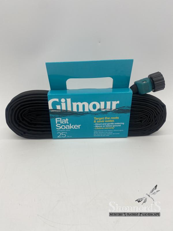 Gilmour flat soaker hose unique construction provides gentle, even, and efficient watering via low pressure weeping. The weeping method watering reduces evaporation by slowly releasing water directly into the ground. Lightweight and flexible, the flat soaker hose is ideal for watering new seedlings, gardens, shrubs, and bushes.