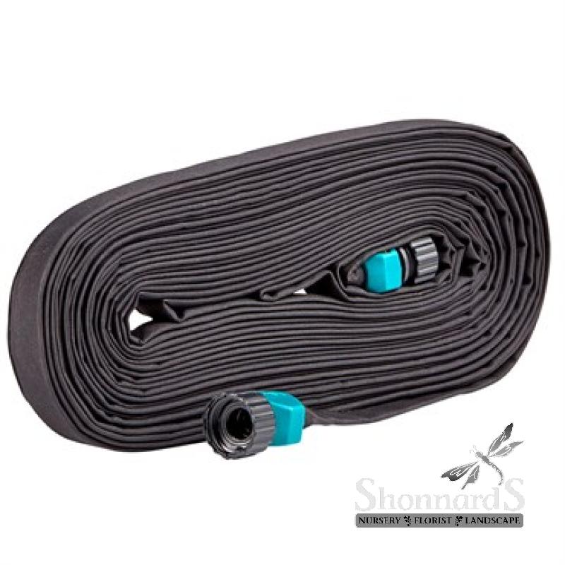 Gilmour flat soaker hose unique construction provides gentle, even, and efficient watering via low pressure weeping. The weeping method watering reduces evaporation by slowly releasing water directly into the ground. Lightweight and flexible, the flat soaker hose is ideal for watering new seedlings, gardens, shrubs, and bushes.