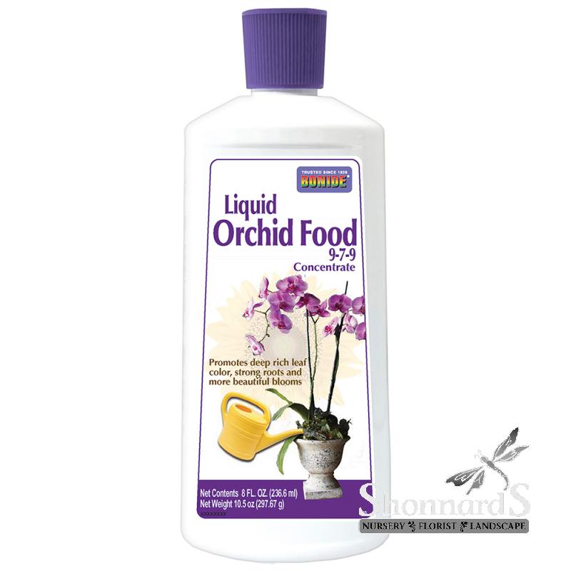 This 9-7-9 formula designed specifically for orchids provides moisture and nutrients for healthy and robust bulbs and blooms. Approximately 10 drops per quart of water. Simply dilute Bonide Liquid Orchid Food with water before application. Do not store diluted product. Carefully read label directions before use.