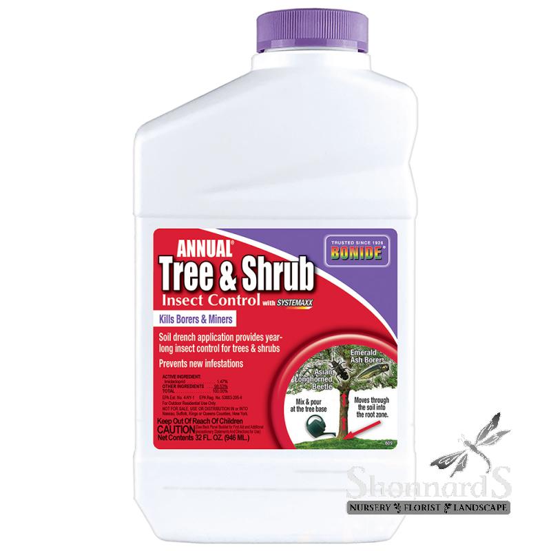 Whether you are dealing with aphids, spider mites, or other common pests, the Bonide Annual Tree & Shrub Concentrate provides a reliable defense, helping to promote healthy growth and robust foliage. Simple to use, mix and pour at the base of trees & shrubs (no spraying needed). Kills emerald ash borers and other listed insect pests for up to one-year. Prevents new infestations through systemic action that won't wash off.