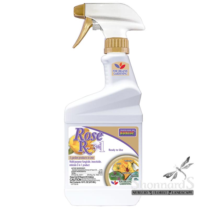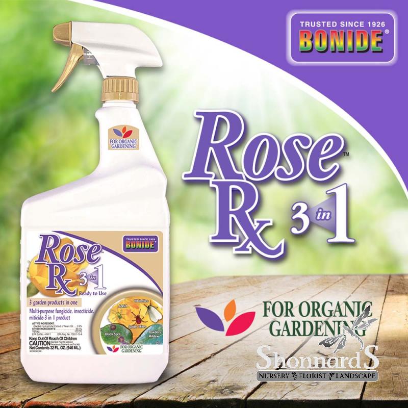 BONIDE Rose Rx® (3-in-1), insecticide, fungicide, miticide for organic gardening. Controls plant disease, mites and all stages of insect life cycles. Use on roses, flowers and more.