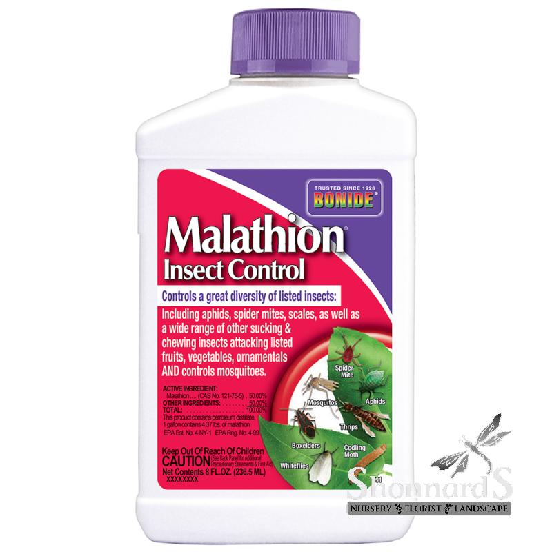 Our pest control is great for use on aphids, spider mites, mosquitoes, scales, thrips, leafhoppers, Japanese beetles, codling moths, & other listed sucking & chewing insects. Use Malathion Insect Control on asparagus, tomatoes, lettuce, melons, squash, blackberries, citrus fruits, roses, carnations, ornamentals, shrubs, & other listed fruits & vegetables. Malathion Insect Control is designed for outdoor use only. Use on listed fruits & vegetables if limited to home gardens. Not intended for indoor use .
