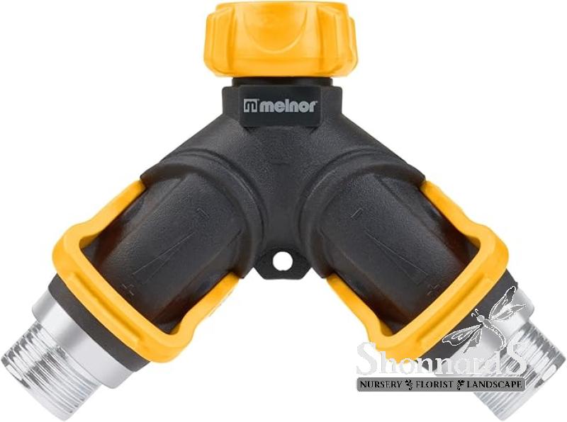 Convert 1 faucet into 2 high flow water streams. The clever lever design eliminates the need to constantly twist or turn a difficult faucet. With the EZ-Flow 2-Way Control Valve just flip to control the water on each valve to easily control a sprinkler and run the hose to wash off the car at the same time.