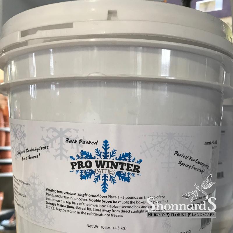 Pro Winter Patties provide carbohydrates and only about 4% protein (as opposed to your active season 18% protein patties) so your bees will get the nutrition they need but your queen won’t be encouraged to start rearing brood too early.