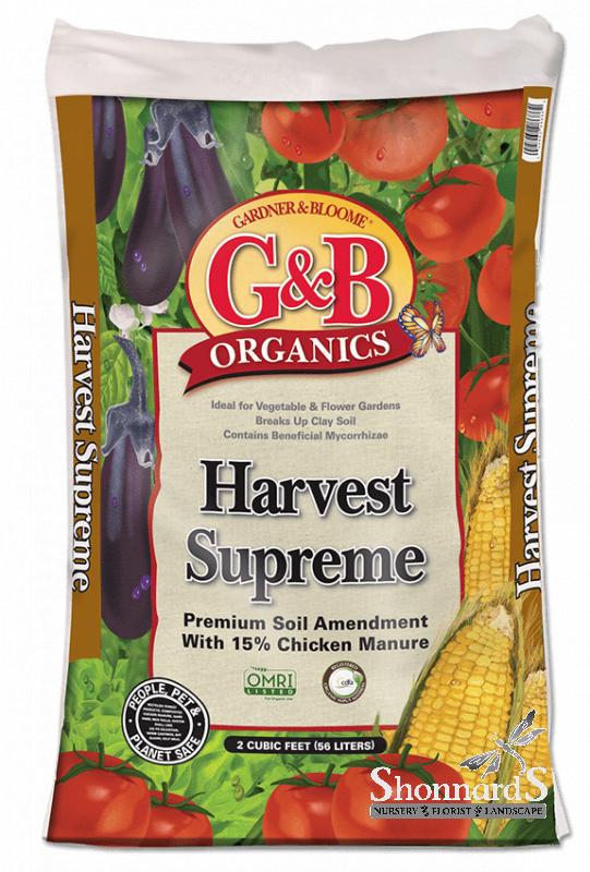 This organic soil amendment is blended with 15% composted chicken manure for more lush, full plant growth. Mix G&B ORGANICS HARVEST SUPREME with your native soil to grow vegetables and flowers to their maximum potential. With added beneficial mycorrhizae — G&B ORGANICS HARVEST SUPREME creates a wonderful soil environment for strong plant and root growth.