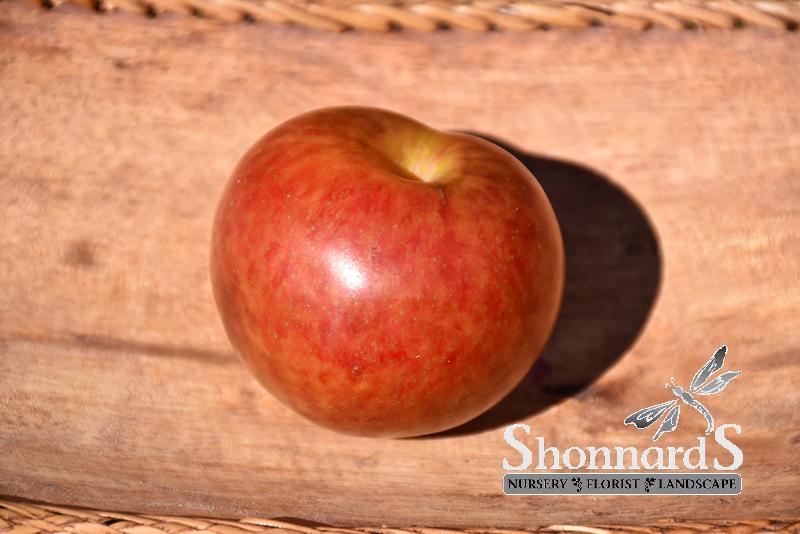 This variety bears large bright red fruit with a gold wash, sweet and juicy amber flesh; an upright spreading tree that is quite ornamental; adaptable but performs best in full sun, well-drained soil; a suitable pollenizer will increase productivity